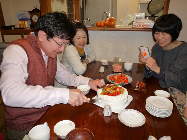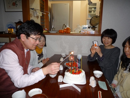 バースデーソングを歌い、ワイワイ。