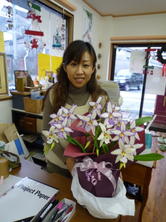 帰ってきて、机の上には、美穂さんにピッタリのランの花。
