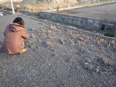 アムリットの駐車場にニョキッリ生えてきたつくしさん。