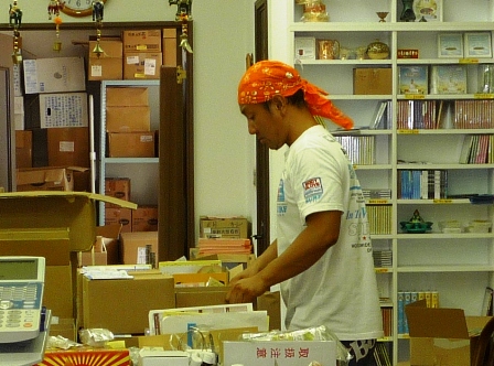 3人でたったか、荷造りし、入荷、電話、時々来るお客様にも対応。