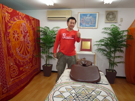 ご主人さんは気導術の藤澤さんのマッサージを受けて