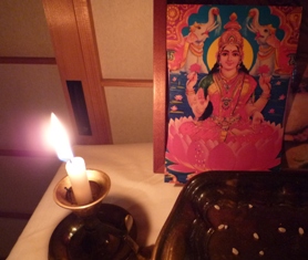 午後7時ごろラクシュミ祭を3人で楽しんだ。