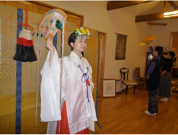 今日は生桑のしあわせオフィスで、巫女舞の教室。